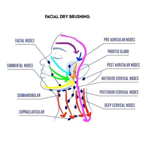 1. Underarm lymph nodes: Brush 7 times clockwise, then 7 times counterclockwise.