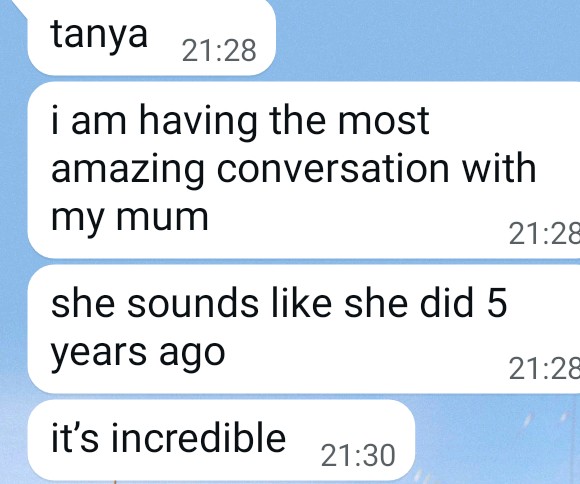 A private whatsapp message from a relative of someone with moderate dementia that has been working with me following a therapeutic diet for 8 weeks.